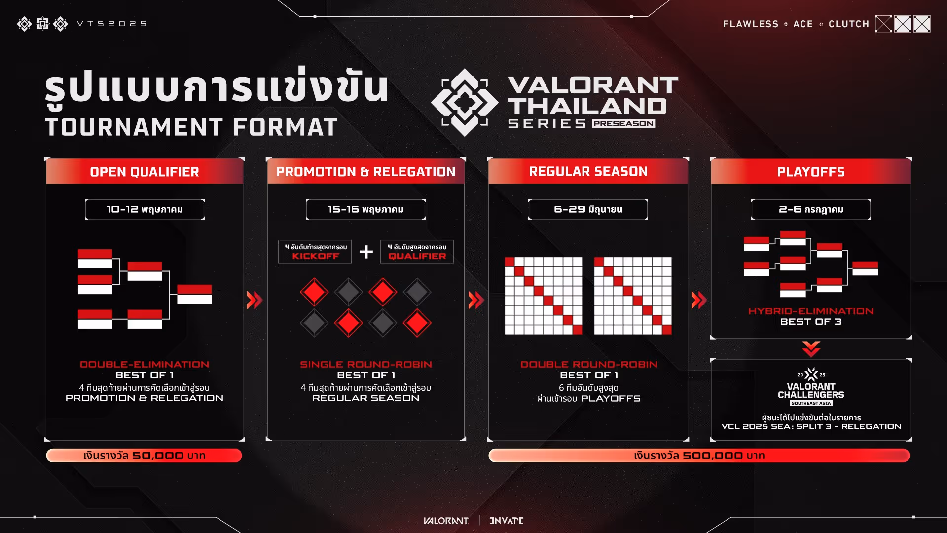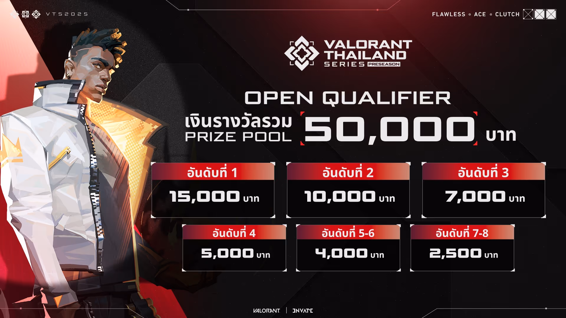 VALORANT: VTS 2025 – Valorant Thailand Series การแข่งขันอีสปอร์ตระดับประเทศของเกม VALORANT จาก Riot Games ที่รวมสุดยอดทีมไทยไว้ในสนามเดียว เพื่อชิงตำแหน่งแชมป์ประเทศไทยและก้าวสู่เวทีระดับ SEA และระดับโลก!